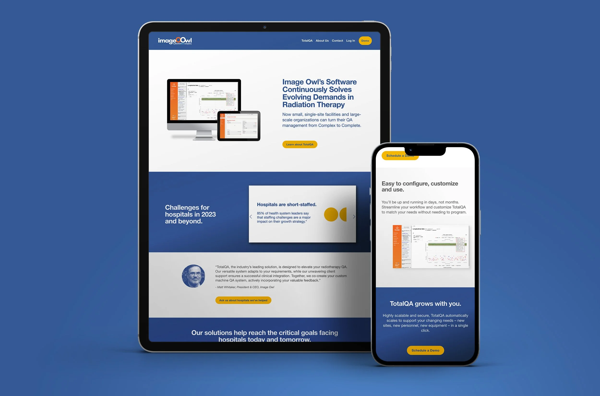 I streamlined a formerly content-heavy, product-centric site, distilling the information to its essentials while positioning Image Owl as trusted experts who deeply understand the complexities of radiation therapy. The result is a clean, intuitive site with clear messaging, strong calls to action, and an elevated user experience.